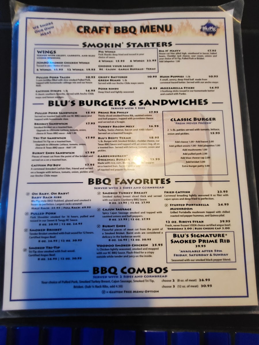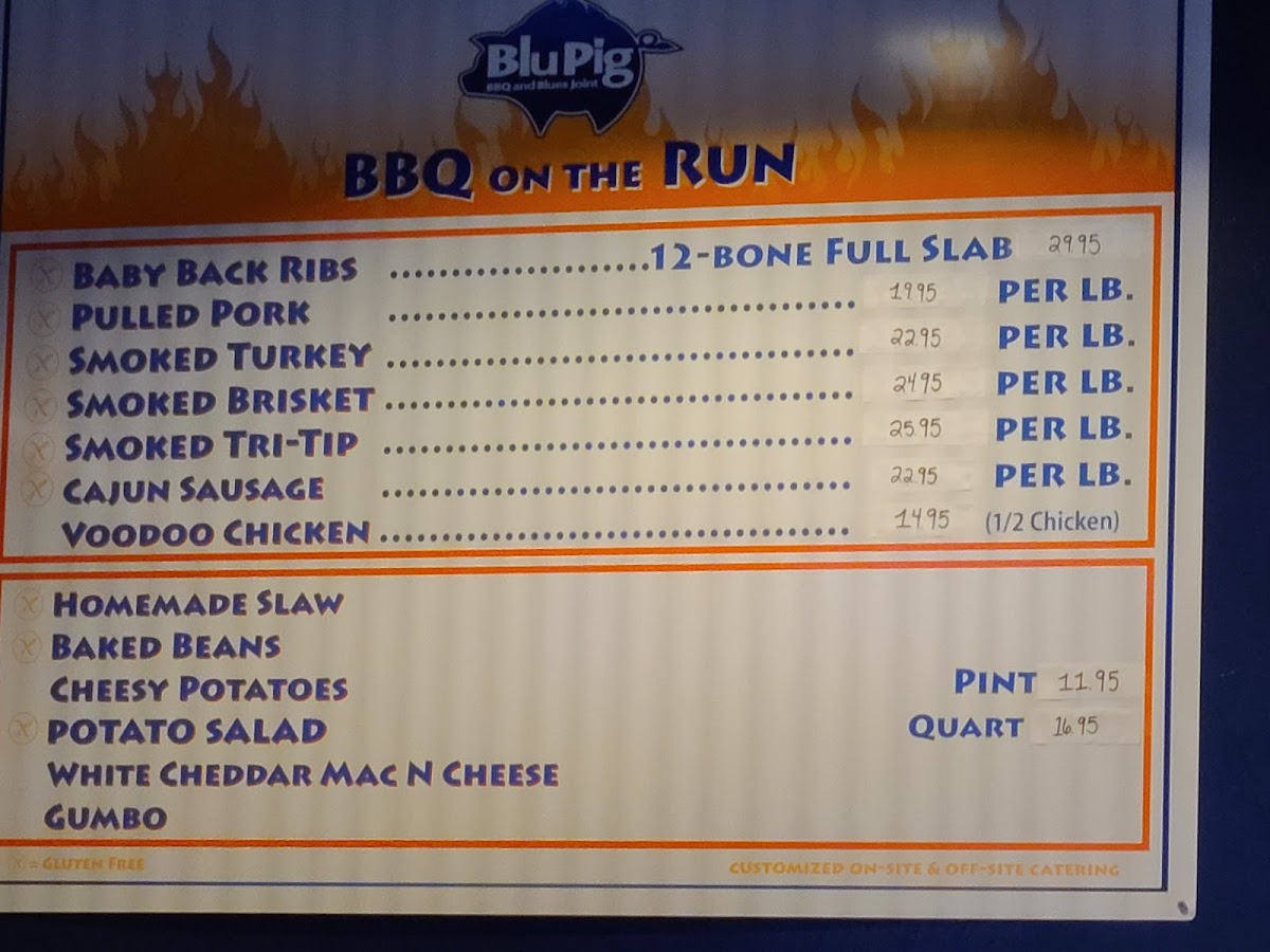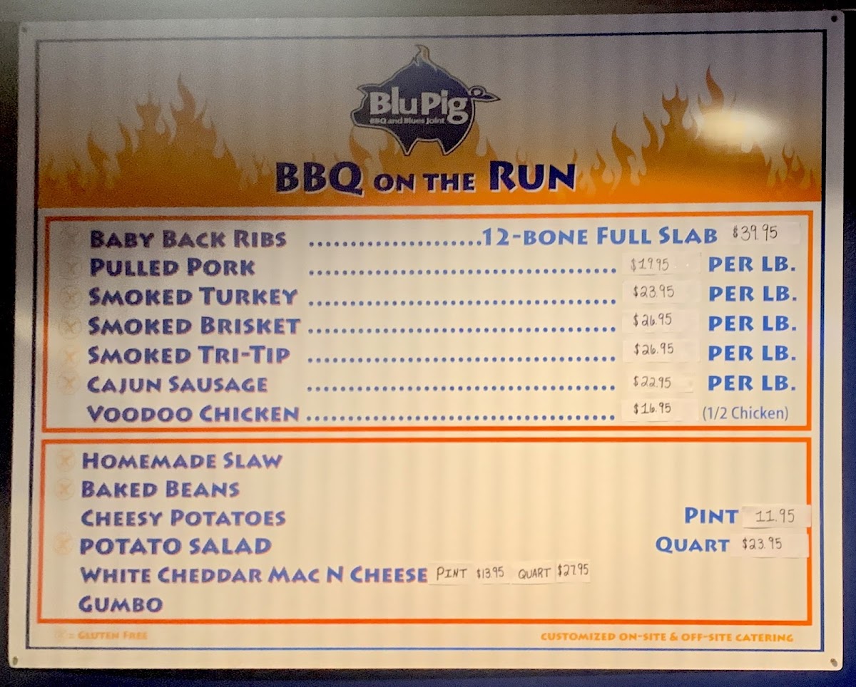 Blu pig style bbq! Rubbed, glazed and smoked 6 hours to perfetion. Largest racks around!