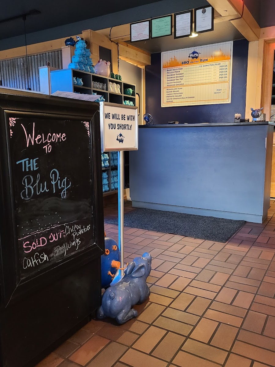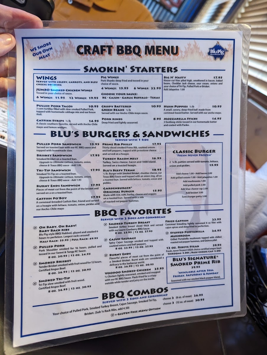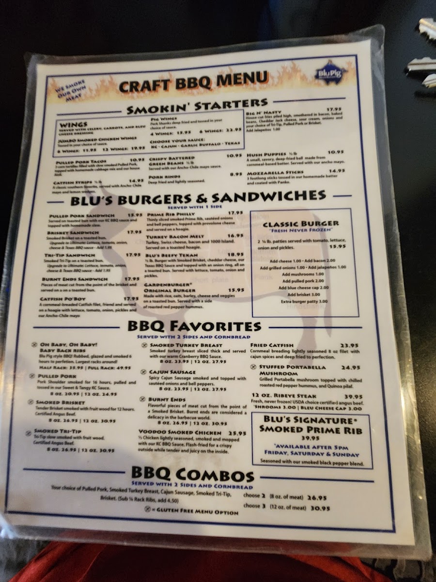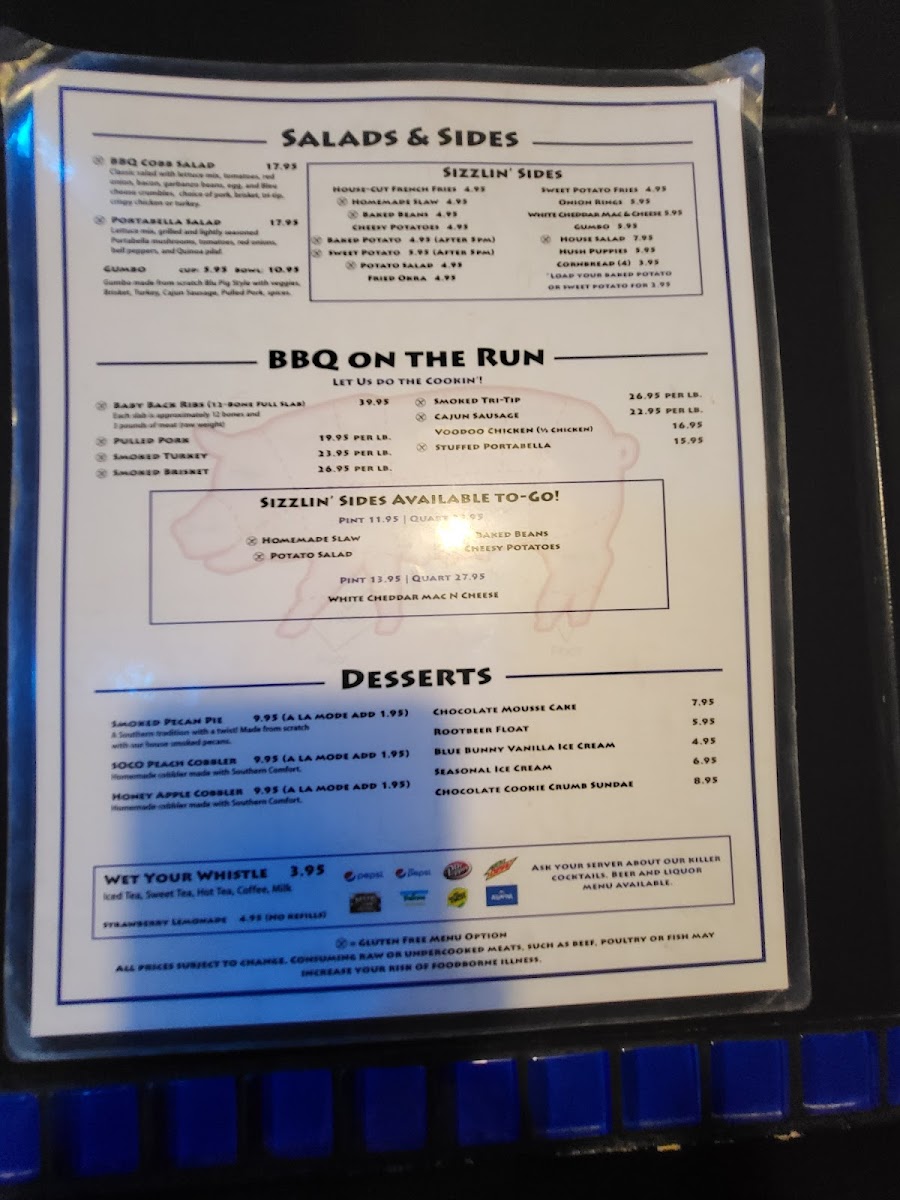 Blu pig style bbq! Rubbed, glazed and smoked 6 hours to perfetion. Largest racks around!